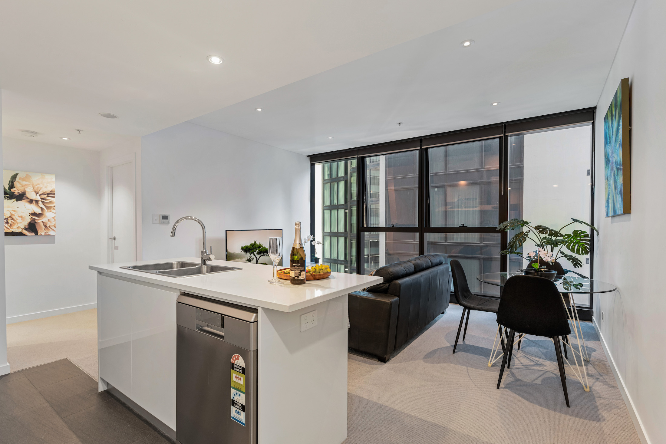 Significantly larger than hotel rooms and most other accommodation options, these fully furnished corporate apartments offer a genuine home-away-from-home experience. Each apartment features open-plan living, a dedicated study area for working remotely, and a modern, functional design that makes daily living effortless.