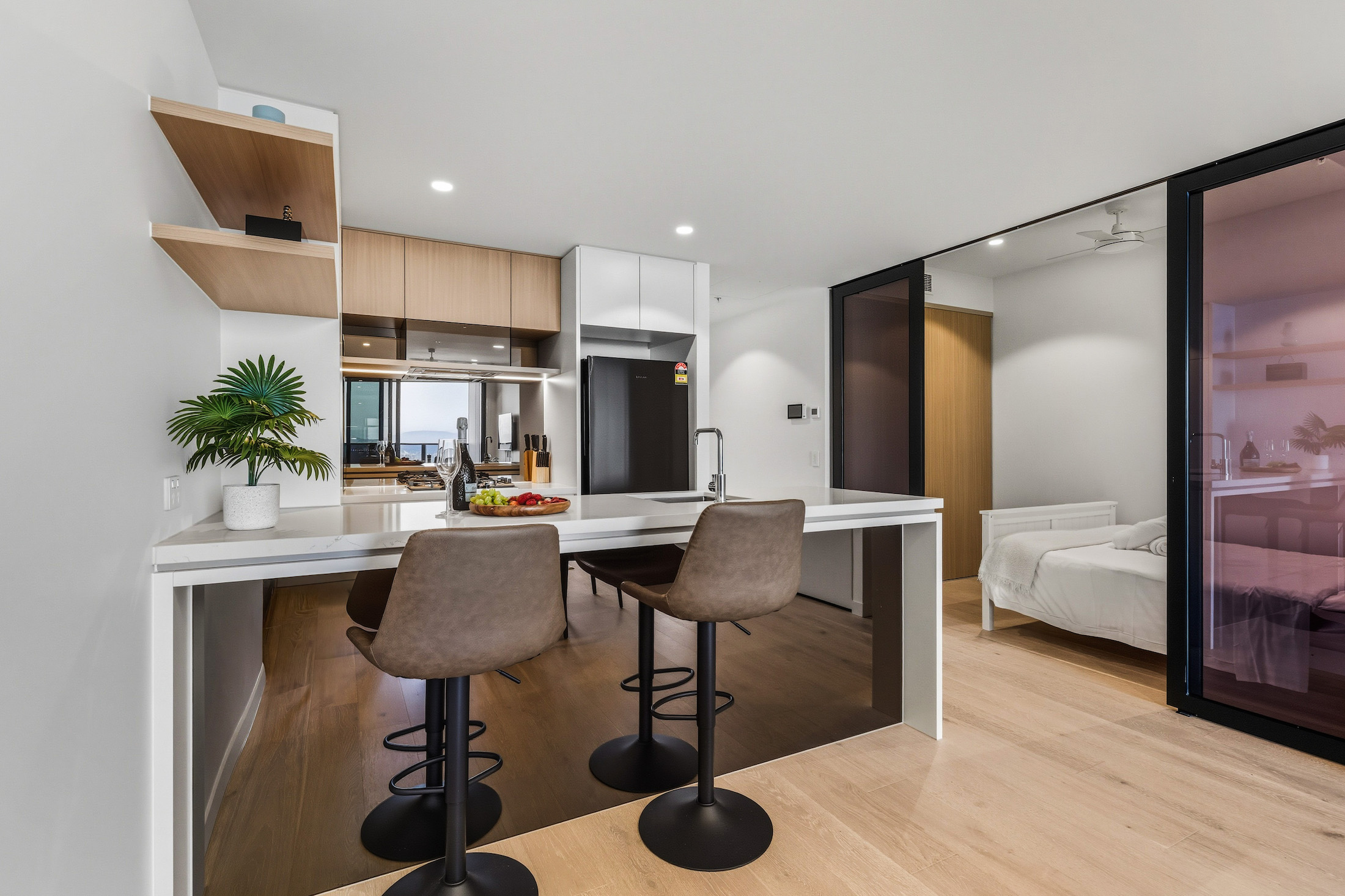 Designed for comfort and practicality, these residences will make busy schedules seamless. The open-plan living and dining area creates a welcoming environment to gather, while the fully equipped galley kitchen with premium appliances allows you to enjoy home-style meals on the road. Large bedrooms with built-in wardrobes provide personal space, and full laundry facilities ensure effortless living during longer stays.