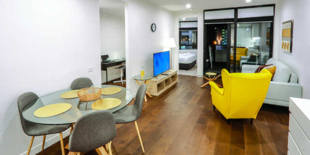 Very suited for corporate travellers, the purpose-designed study room has a good-sized desk and allows work to be separated from the primary living area. Stay well connected with the fast, apartment WiFi connection, a must if late-night conference calls are being scheduled. The study also includes a single ottoman bed.